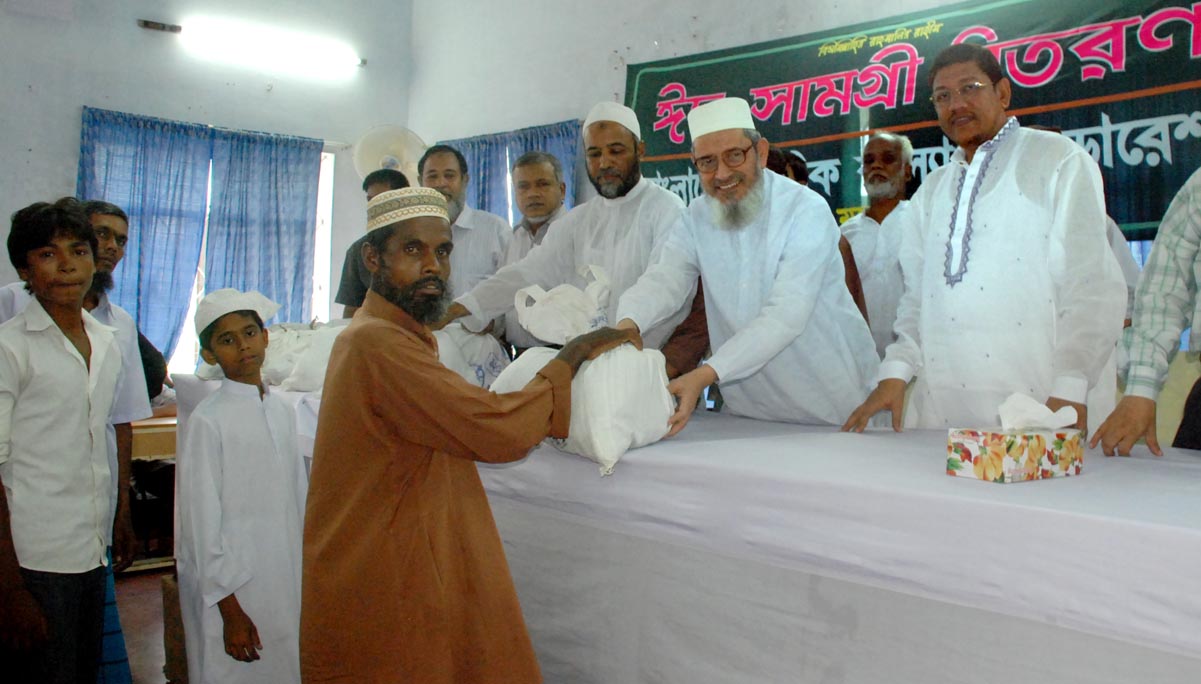 Ameer-e-Jamaat Maqbul Ahmad distributed Eid gift items among the impoverished labors on 7th September, 2010. The event was arranged by Bangladesh Sramik Kollan Federation Dhaka city unit
