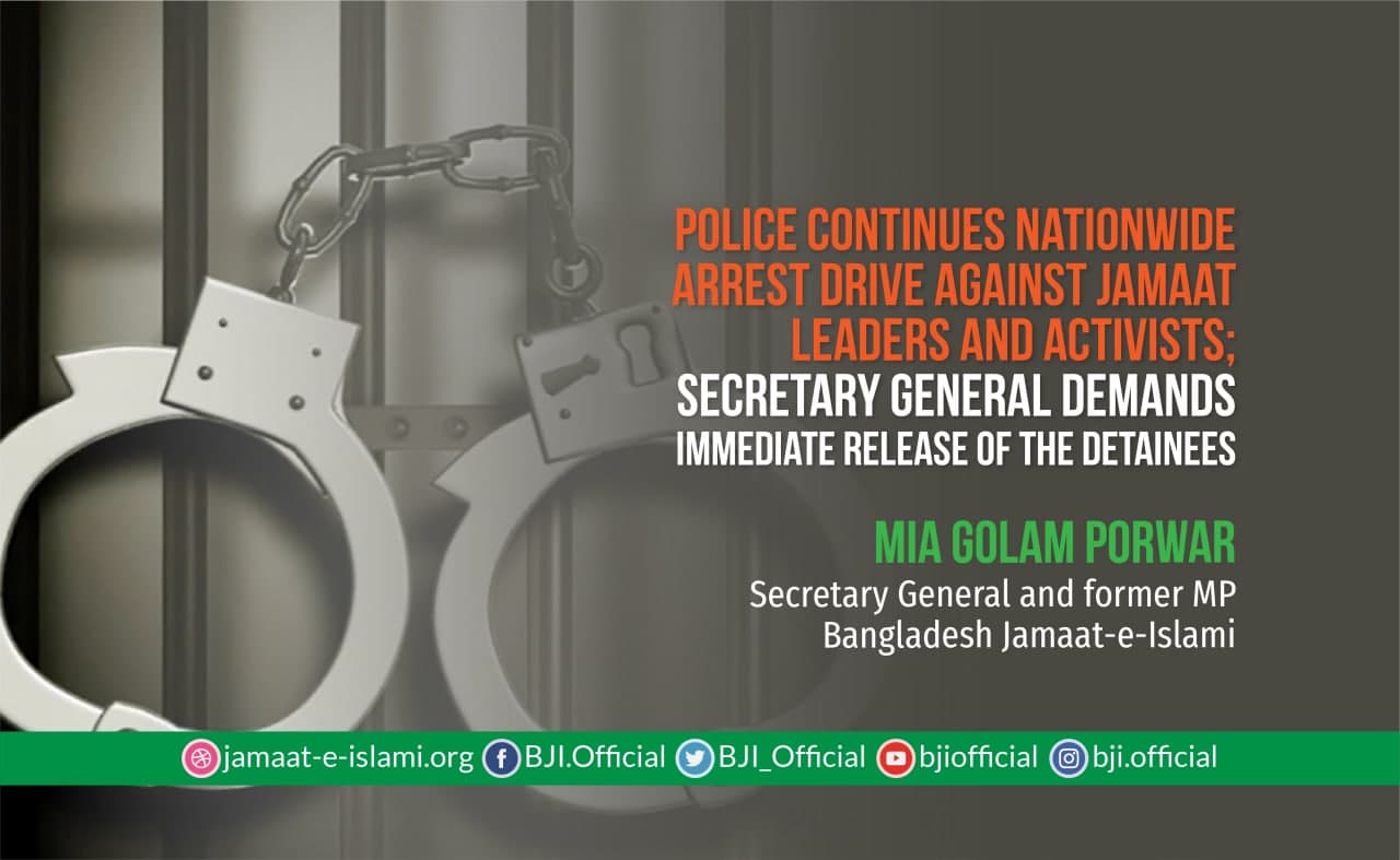 Police continues nationwide arrest drive against Jamaat leaders and activists; Secretary General demands immediate release of the detainees