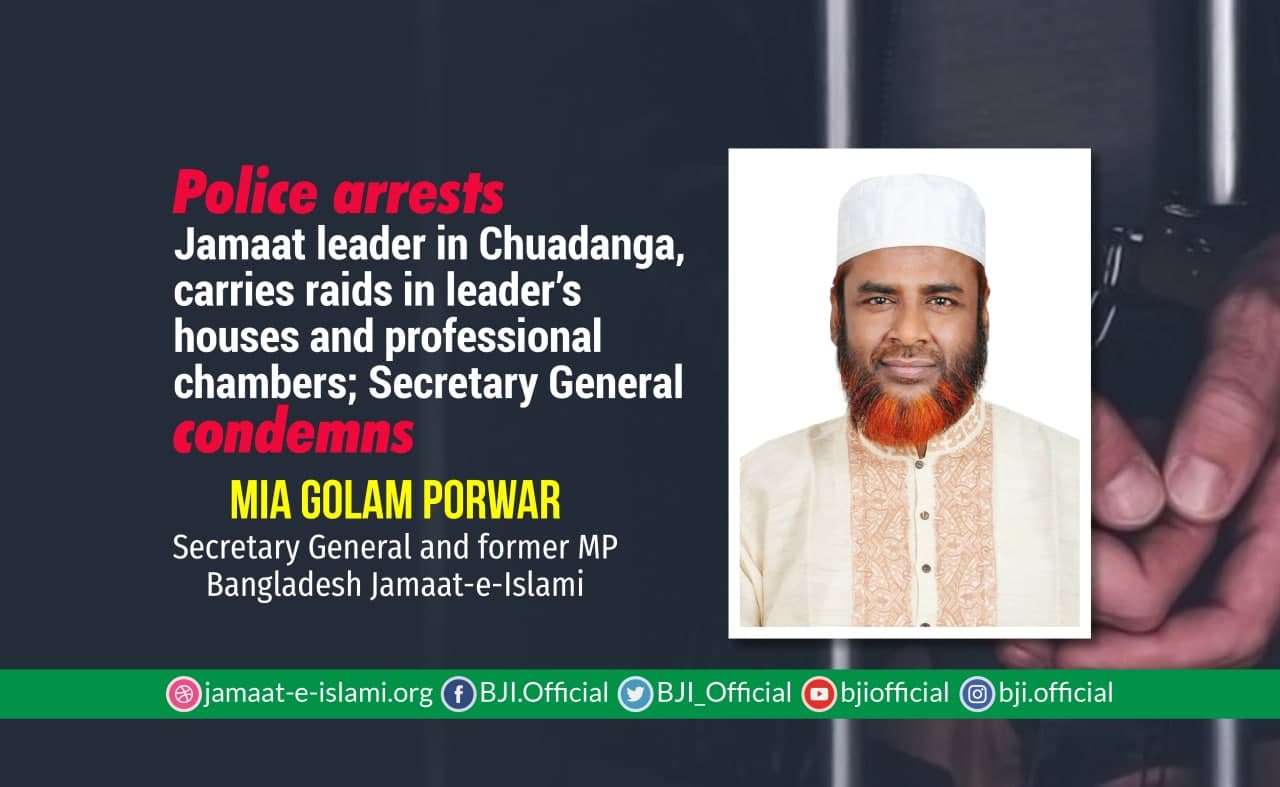 Police arrests Jamaat leader in Chuadanga, carries raids in leader’s houses and professional chambers; Secretary General condemns