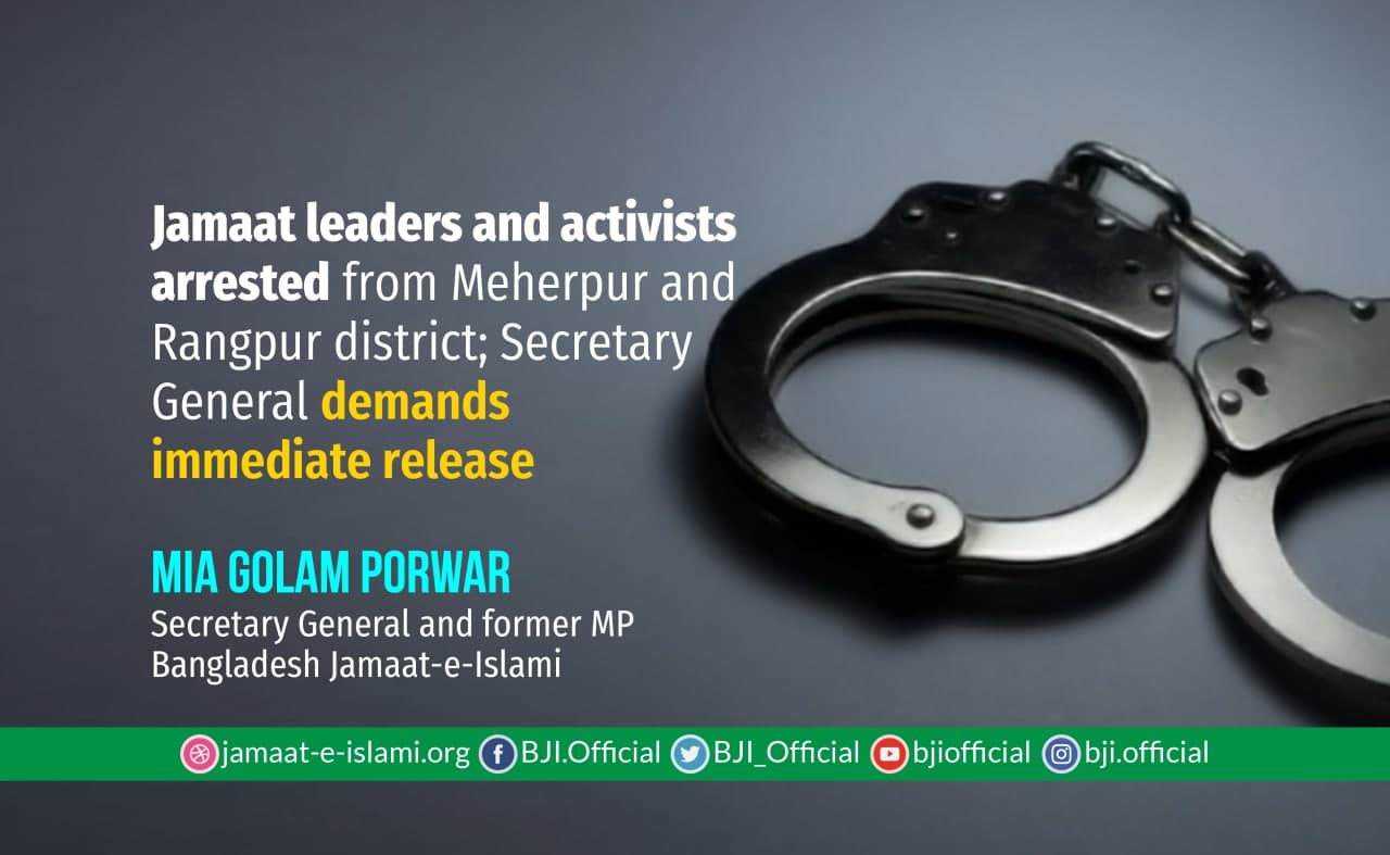 Jamaat leaders and activists arrested from Meherpur and Rangpur district; Secretary General demands immediate release