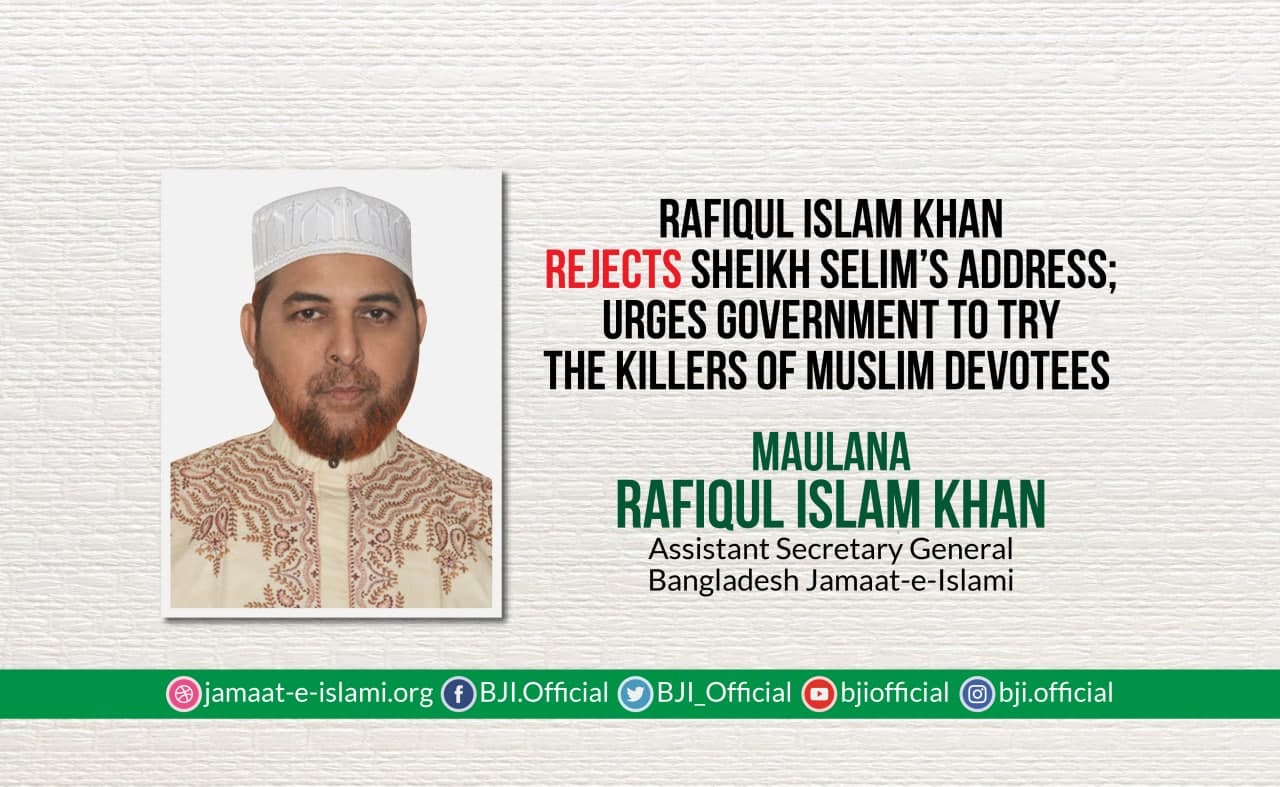 Rafiqul Islam Khan rejects Sheikh Selim’s address; urges government to try the killers of Muslim devotees