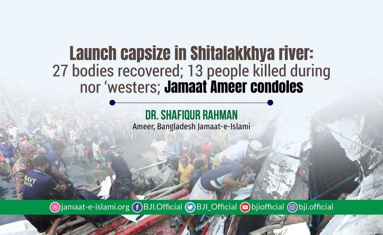 Launch capsize in Shitalakkhya river: 27 bodies recovered; 13 people killed during nor ‘westers; Jamaat Ameer condoles