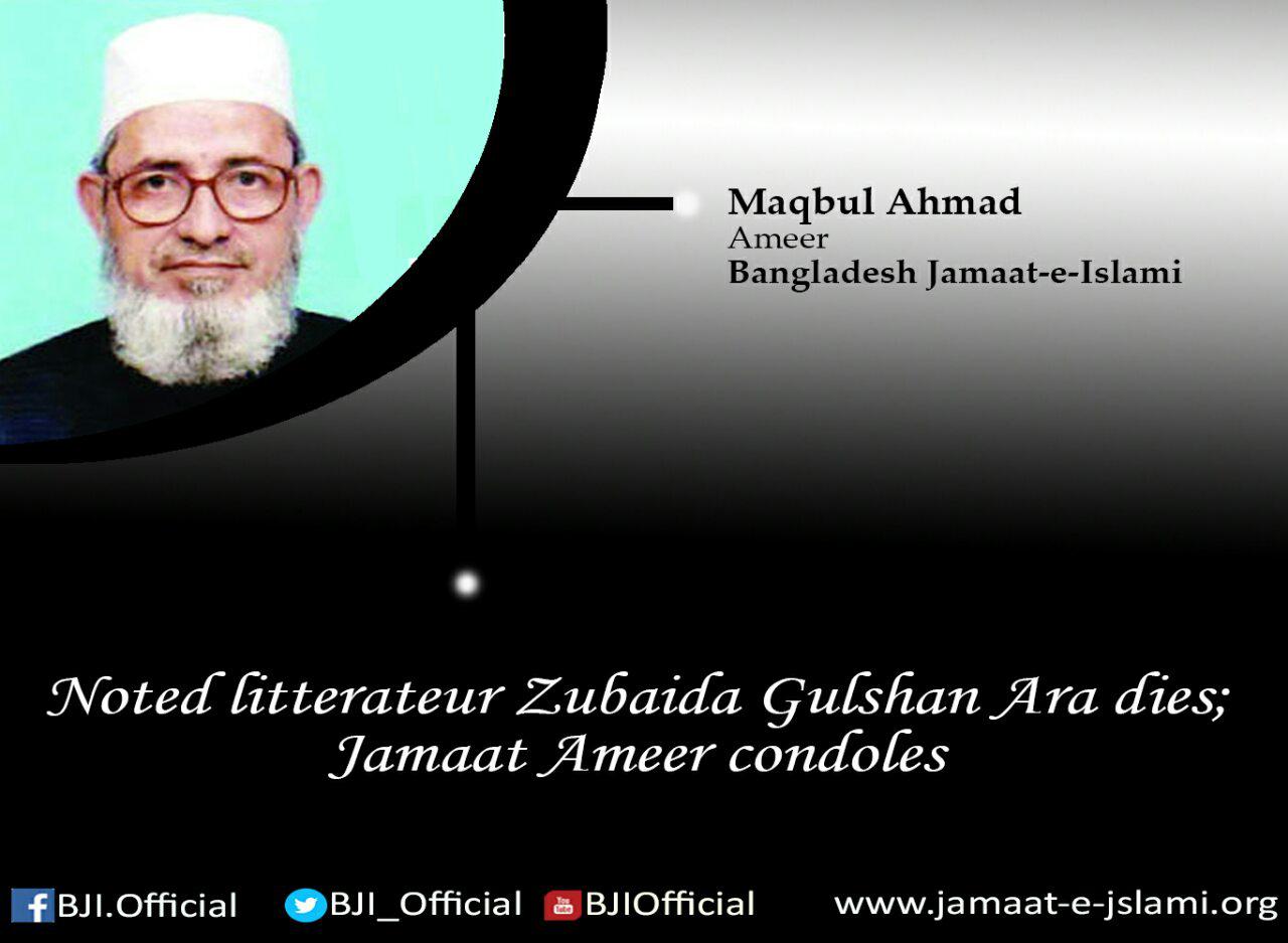 Noted litterateur Zubaida Gulshan Ara dies; Jamaat Ameer condoles