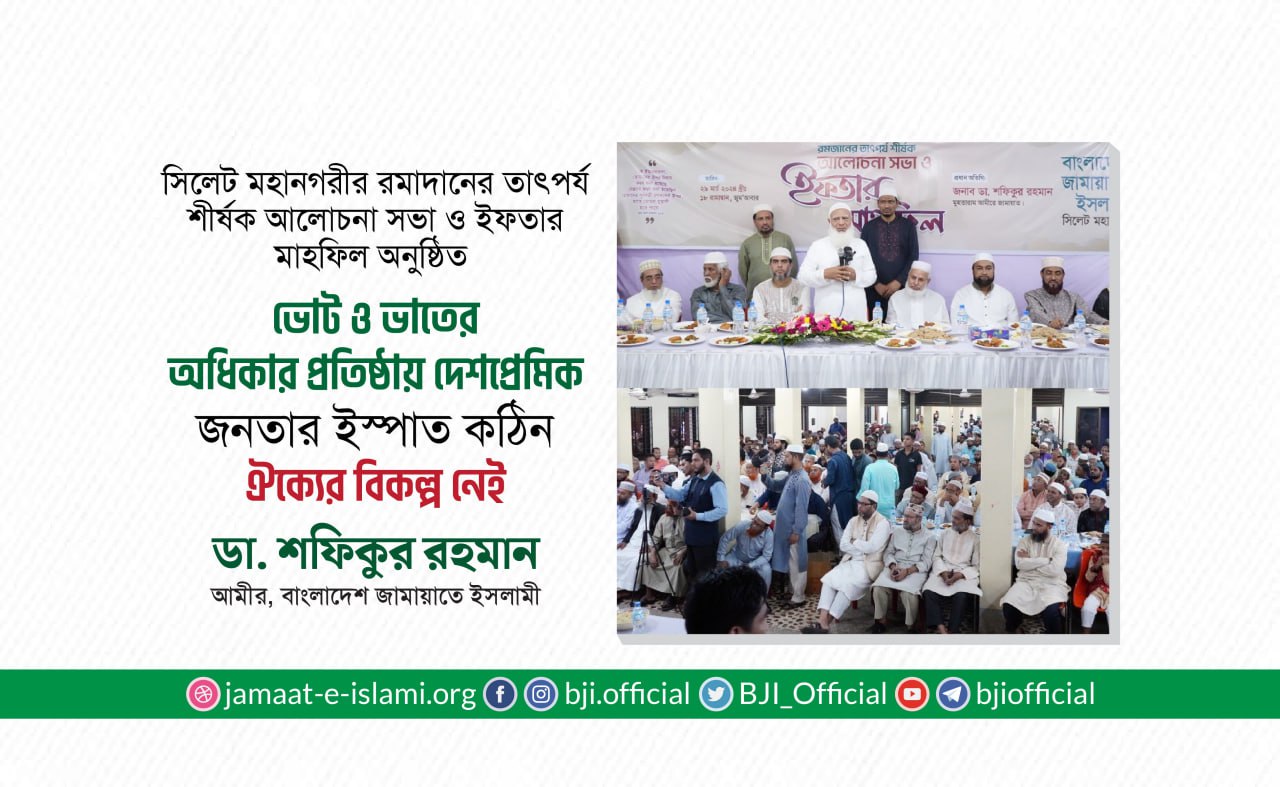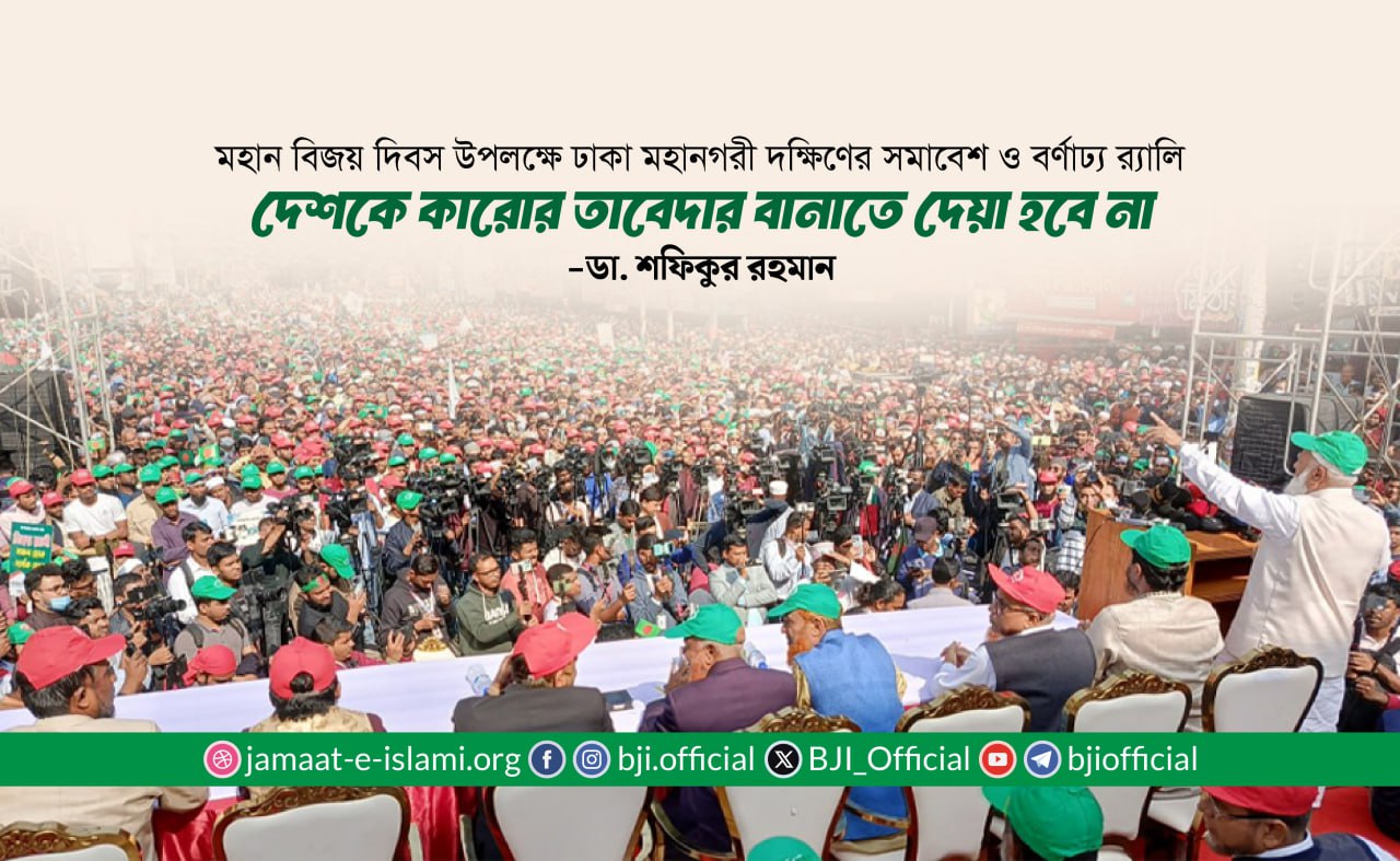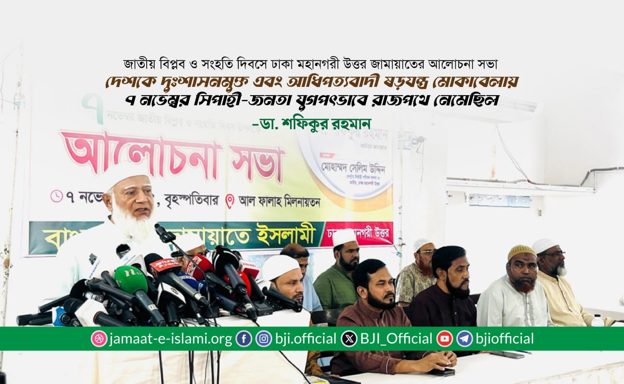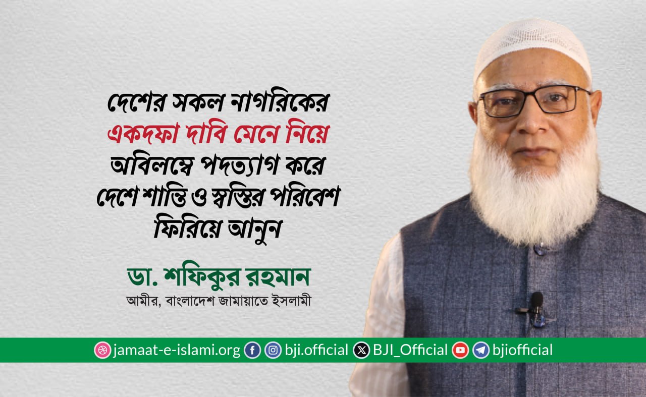 বক্তব্যে ডা. শফিকুর রহমান বলেন, “আল্লাহ ও তাঁর রাসূল (সা.)-এর পূর্ণ আনুগত্য এবং কুরআন-হাদীসের নির্দেশনা মেনে চললেই ...