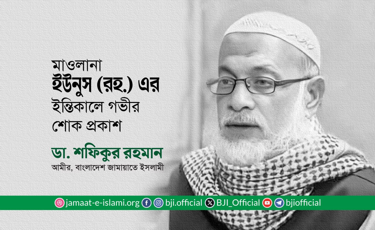 চট্টগ্রামের হাটহাজারীর প্রবীণ আলেম, নূরানী তা’লীমুল কুরআন বোর্ড চট্টগ্রাম বাংলাদেশের প্রতিষ্ঠাতা সদস্য ও আমেলা সদস্য মাওলানা ইউনুস (রহ.) এর ইন্তিকালে গভীর শোক প্রকাশ করে বাংলাদেশ জামায়াতে ইসলামীর আমীর ডা. শফিকুর রহমান ২৮ জুলাই এক শোকবাণী প্রদান করেছেন।