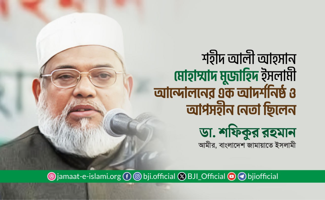 বাংলাদেশ জামায়াতে ইসলামীর সাবেক সেক্রেটারি জেনারেল ও সাবেক সমাজকল্যাণ মন্ত্রী জনাব আলী আহসান মোহাম্মাদ মুজাহিদের অবদানের কথা স্মরণ করে বাংলাদেশ জামায়াতে ইসলামীর আমীর ডা. শফিকুর রহমান ২০ নভেম্বর প্রদত্ত এক বিবৃতিতে বলেন,