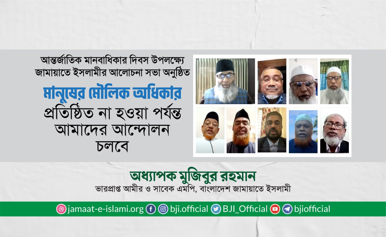 সারা বিশ্বে এমন এক সময় মানবাধিকার দিবস পালিত হচ্ছে যখন বাংলাদেশে রাষ্ট্রীয় পৃষ্টপোষকতায় চলছে বিচারবহির্ভূত হত্যা, গুম, খুন, সন্ত্রাস, নারী ও শিশু ধর্ষণ, নির্যাতন, ঘুষ-দুর্নীতিসহ মানবাধিকার লংঘনের মচ্ছব। বাংলাদেশের মানুষ আজ তাদের ভোটাধিকার, মত প্রকাশের স্বাধীনতা, সভা-সমাবেশ করা ও স্বাধীনভাবে রাজনীতি করার অধিকার থেকে চরমভাবে বঞ্চিত। এক কথায় দেশে মানুষের জানমাল ও ইজ্জত-আব্রুর কোনো নিরাপত্তা নেই।