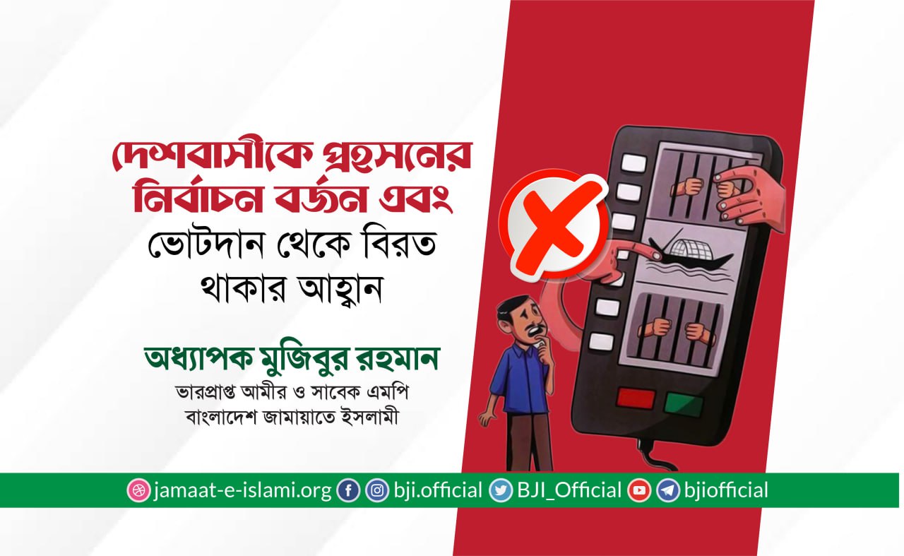 বাংলাদেশে বিদ্যমান সংকট নিরসন কল্পে একটি অবাধ, সুষ্ঠু, গ্রহণযোগ্য ও অংশগ্রহণমূলক নির্বাচন অনুষ্ঠানের জন্য নতুন নির্বাচন কমিশন গঠন এবং নির্বাচন কমিশনকে অধিকতর শক্তিশালীকরণ ও নির্বাচনকালীন সরকারের নিরপেক্ষতা নিশ্চিত করার লক্ষ্যে দেশ এবং জাতির উদ্দেশ্যে বাংলাদেশ জামায়াতে ইসলামীর পক্ষ থেকে আমীরে জামায়াত জনাব মকবুল আহমাদ নিম্নোক্ত প্রস্তাবনা পেশ করেন। প্রস্তাবনায় তিনি বলেন, গণপ্রজাতন্ত্রী বাংলাদেশের সংবিধান অনুযায়ী বাংলাদেশ একটি একক, স্বাধীন ও সার্বভৌম রাষ্ট্র। এ রাষ্ট্র পরিচালনার মূলনীতিসমূহের মধ্যে অন্যতম মূলনীতি হচ্ছে গণতন্ত্র। গণতন্ত্র হচ্ছে সুশাসন, উন্নয়ন, অগ্রগতি ও স্থিতিশীলতার অন্যতম সোপান। গণতন্ত্রের মাধ্যমে সমাজের মানুষের তথা রাষ্ট্রের নাগরিকগণ নিজেদের অধিকার প্রতিষ্ঠা করতে পারে। নির্বাচন প্রক্রিয়া হচ্ছে এ গণতান্ত্রিক ব্যবস্থার একটি সর্বজন ...