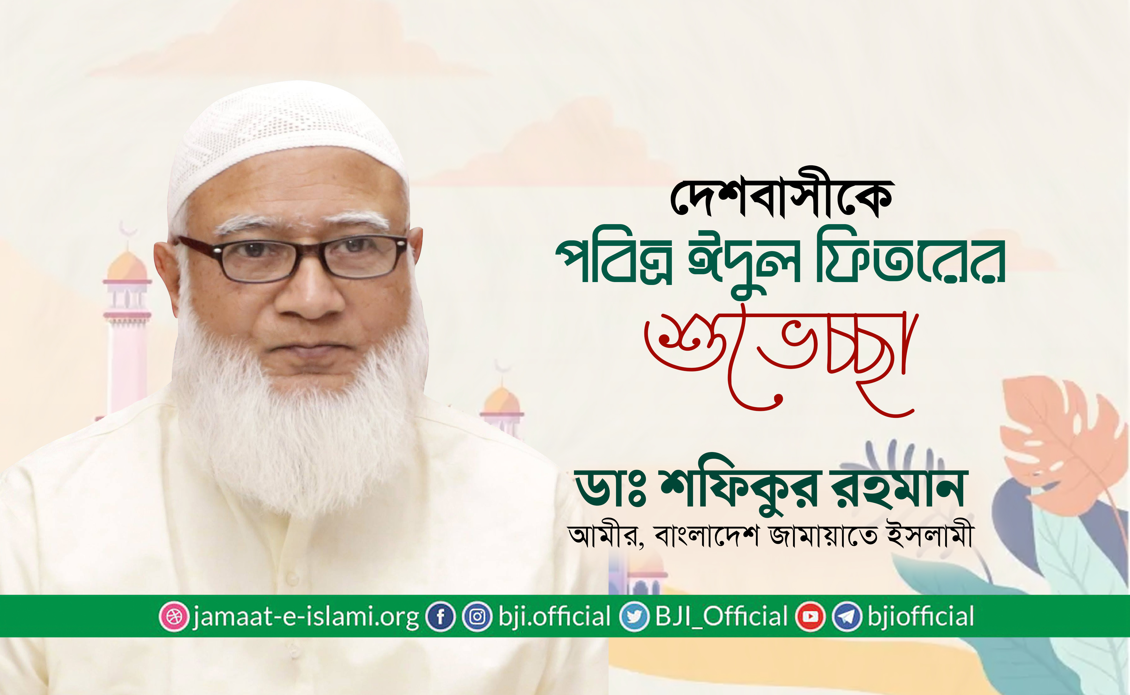 মাহে রমাদানের পবিত্রতা রক্ষা এবং তাক্বওয়ার ভিত্তিতে ব্যক্তি, সমাজ ও রাষ্ট্র পরিচালনার আহ্বান জানিয়ে বাংলাদেশ জামায়াতে ইসলামীর আমীর ডা. শফিকুর রহমান ২৩ এপ্রিল ২০২০ নিম্নোক্ত বিবৃতি প্রদান করেছেনঃ-