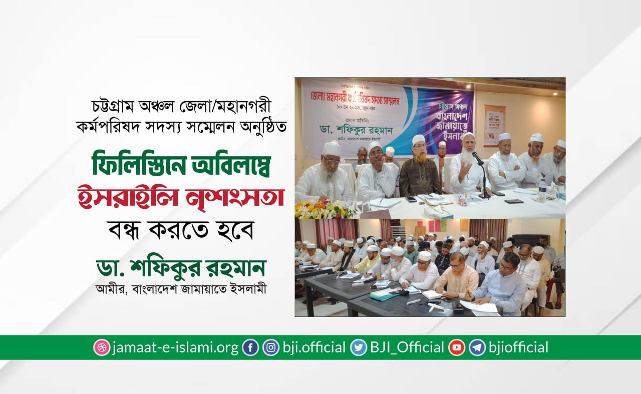 মতবিনিময় সভায় আমীরে জামায়াত ফিলিস্তিন প্রসঙ্গ উল্লেখ করে বলেন, “বিশ্ব মুসলিম উম্মাহর মত ফিলিস্তিনের সঙ্গে আমাদের আন্তরিক সম্পর্ক বিদ্যমান এবং এ সম্পর্ক চিরদিন অটুট থাকবে ইনশাআল্লাহ। অতীতে বহু বার ফিলিস্তিনের মজলুম মুসলমানদের ওপর জুলুম-নির্যাতনের স্টিমরোলার চালানো হয়েছে। দুই বছরেরও বেশি সময় ধরে চলা ইসরাইলি বোমা বর্ষণে ...