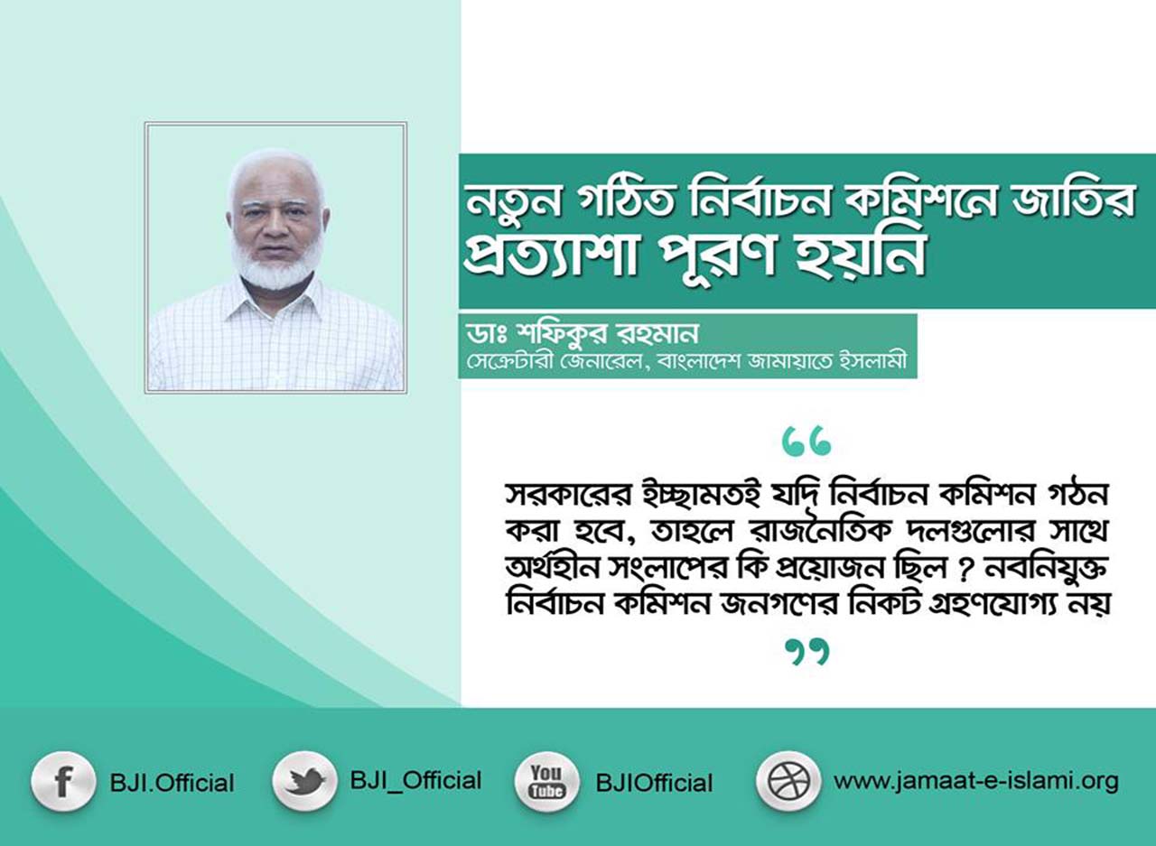 নতুন গঠিত নির্বাচন কমিশনে জাতির প্রত্যাশা পূরণ হয়নি- ডা.শফিকুর রহমান