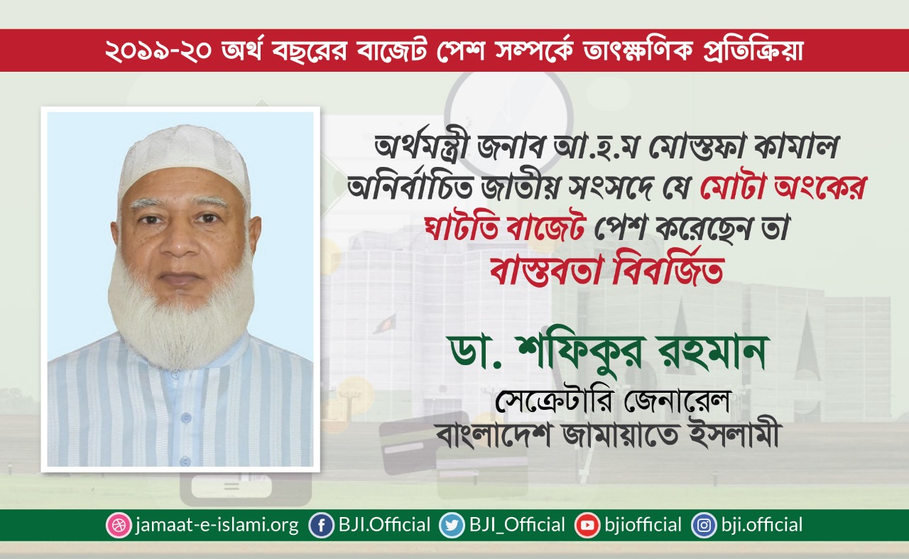 ২০১৯-২০ অর্থ বছরের বাজেট পেশ সম্পর্কে তাৎক্ষণিকভাবে প্রাথমিক প্রতিক্রিয়া