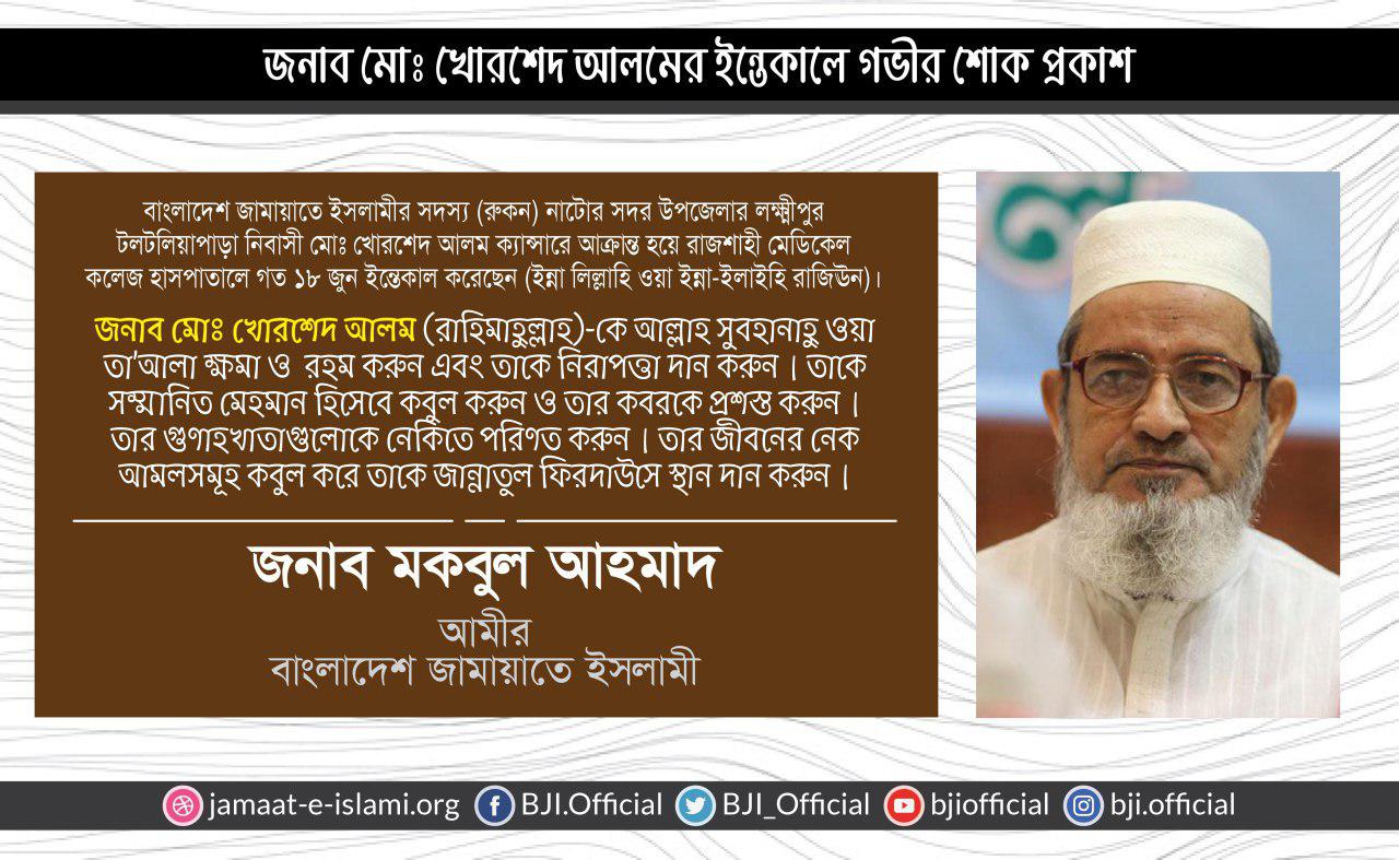 জনাব মোঃ খোরশেদ আলমের ইন্তেকালে গভীর শোক প্রকাশ