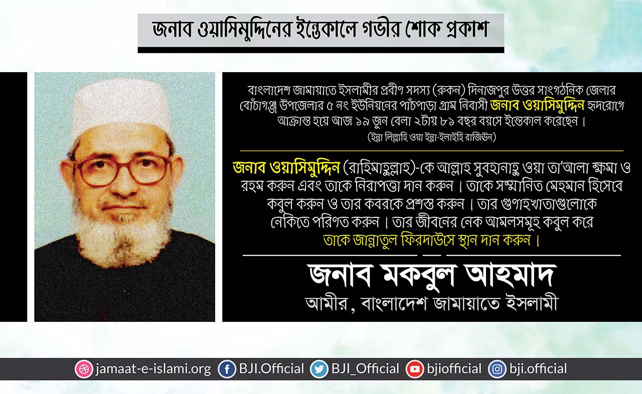 জনাব ওয়াসিমুদ্দিনের ইন্তেকালে গভীর শোক প্রকাশ