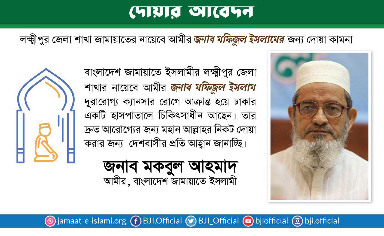 লক্ষ্মীপুর জেলা শাখা জামায়াতের নায়েবে আমীর জনাব মফিজুল ইসলামের জন্য দোয়া কামনা