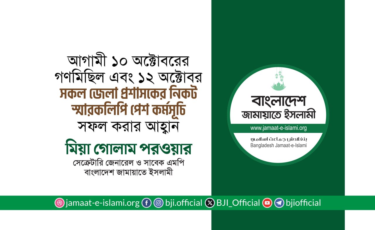 জুলাই জাতীয় সনদের ভিত্তিতে ফেব্রুয়ারিতে নির্বাচনসহ ৫ দফা দাবিতে রাজধানীতে জামায়াতে ইসলামীর গণমিছিল অনুষ্ঠিত