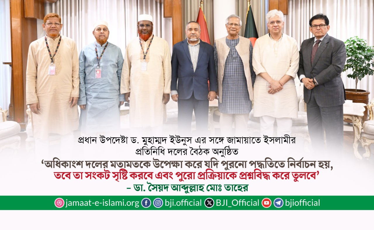 প্রধান উপদেষ্টা ড. মুহাম্মদ ইউনুস এর সঙ্গে জামায়াতে ইসলামীর প্রতিনিধি দলের বৈঠক অনুষ্ঠিত