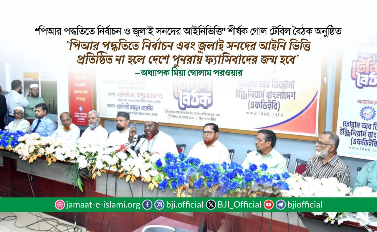 “পিআর পদ্ধতিতে নির্বাচন ও জুলাই সনদের আইনিভিত্তি” শীর্ষক গোল টেবিল বৈঠক অনুষ্ঠিত