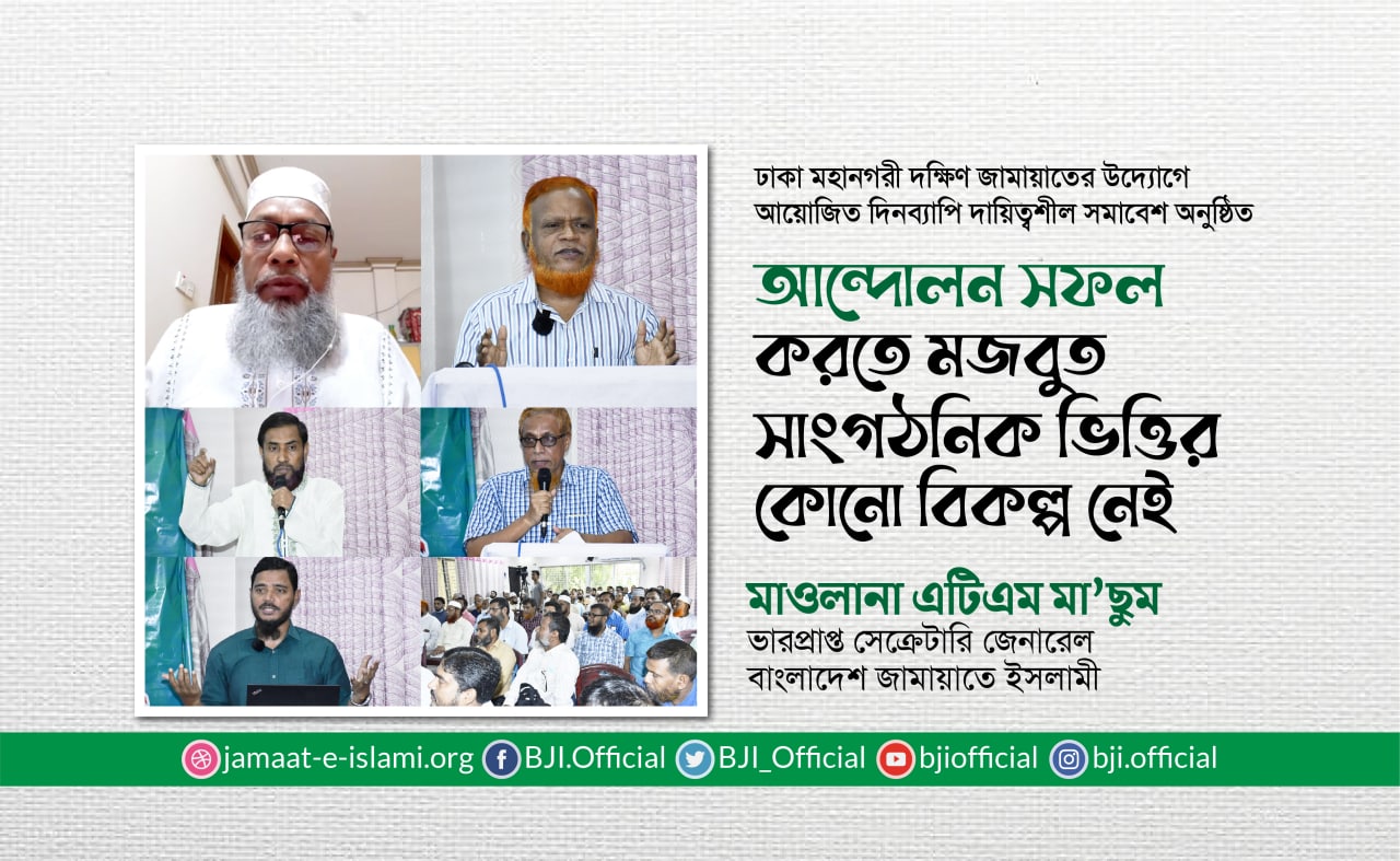 ঢাকা মহানগরী দক্ষিণ জামায়াতের উদ্যোগে আয়োজিত দিনব্যাপি দায়িত্বশীল সমাবেশ অনুষ্ঠিত