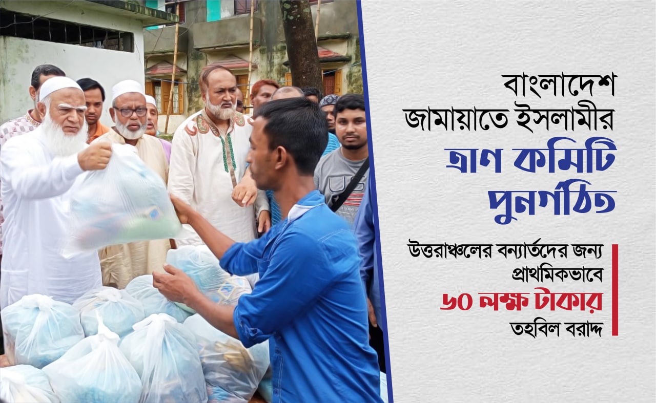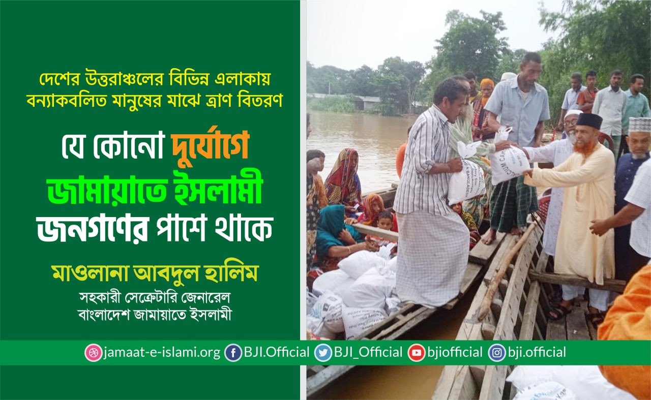 দেশের উত্তরাঞ্চলের বিভিন্ন এলাকায় বন্যাকবলিত জনগণের মাঝে জামায়াতের ত্রাণ বিতরণ