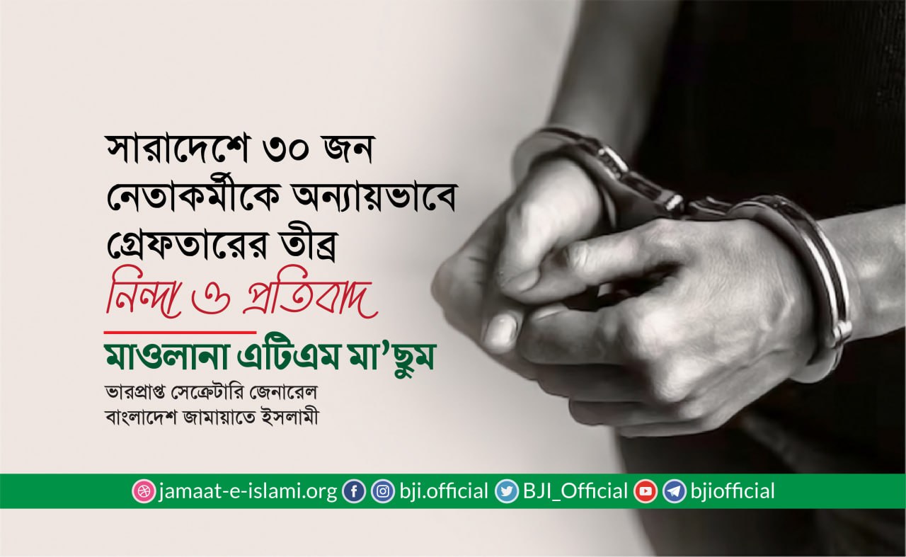 ক্বারী আবদুল মজিদসহ সারাদেশে নেতাকর্মীদের গ্রেফতারের তীব্র নিন্দা ও প্রতিবাদ