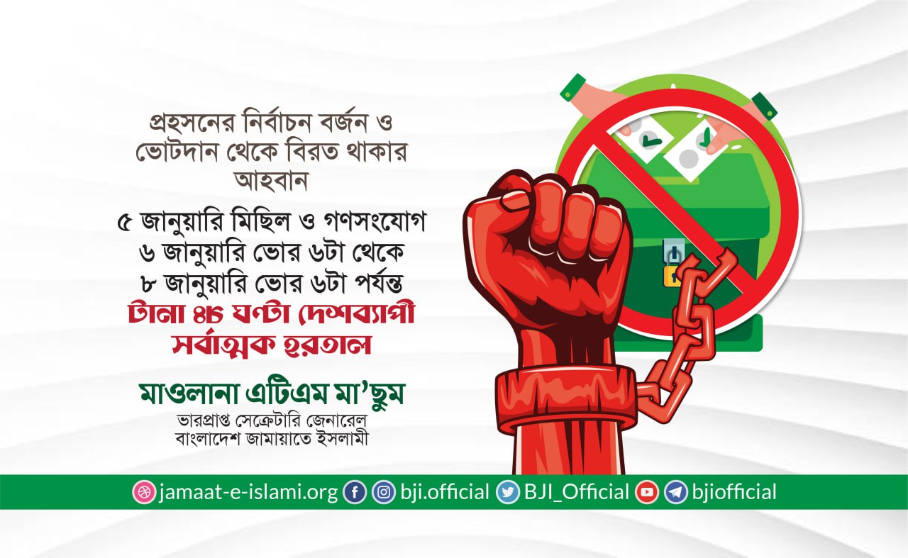 প্রহসনের নির্বাচন বর্জন ও ভোটদান থেকে বিরত থাকার আহবান