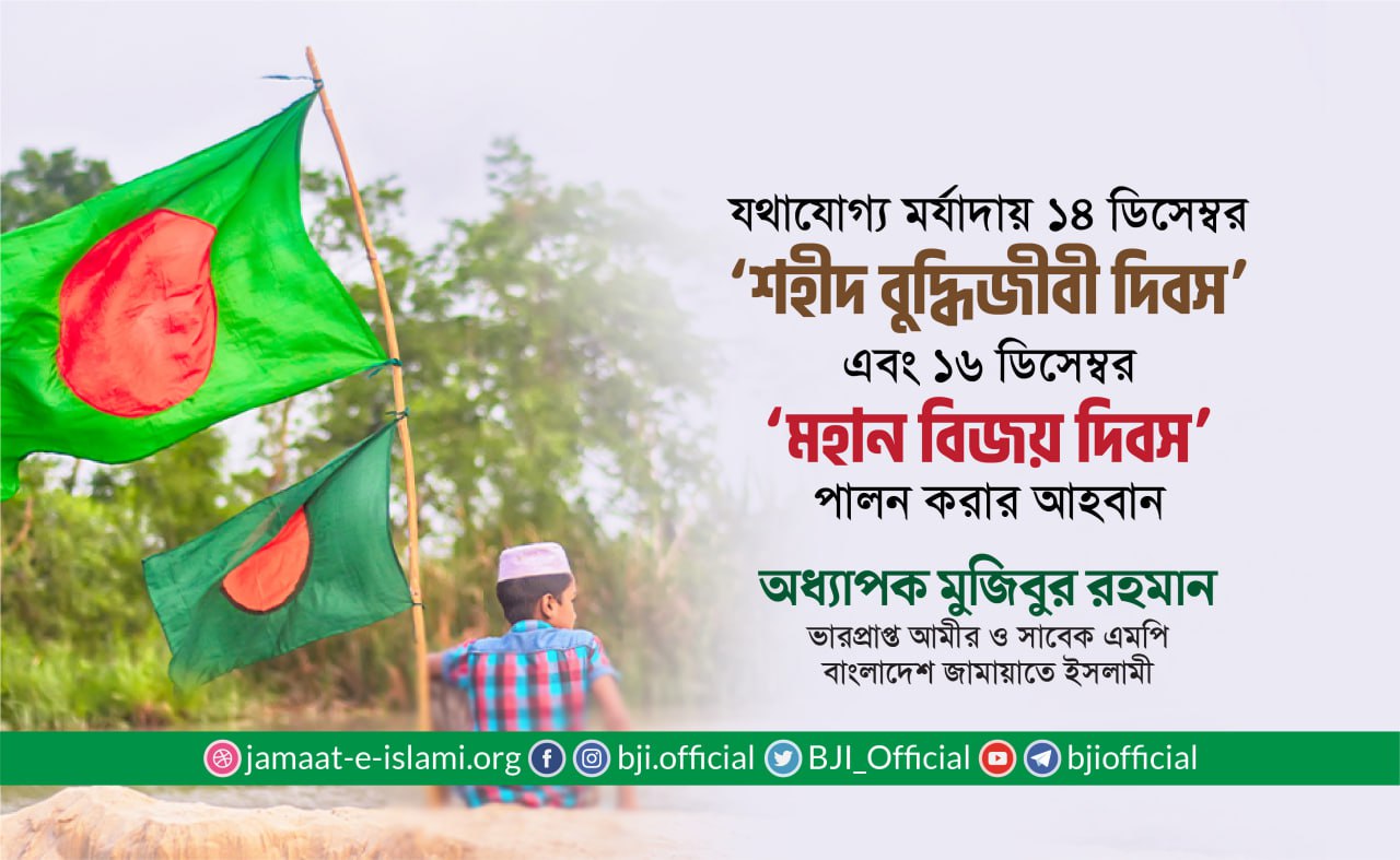 ২৯ নভেম্বর অবরোধ কর্মসূচি সফল করায় দেশবাসী ও জামায়াতে ইসলামীর সর্বস্তরের নেতাকর্মীকে আন্তরিক অভিনন্দন