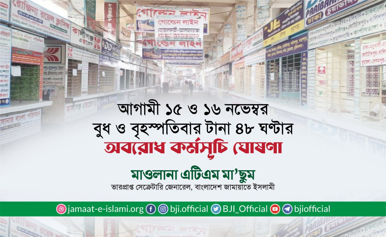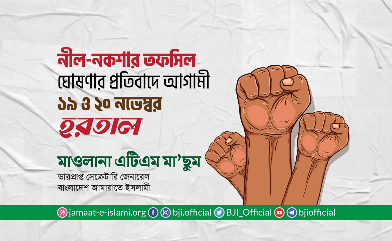 ১৯ ও ২০ নভেম্বর হরতাল কর্মসূচি সফল করায় দেশবাসী ও জামায়াতের সর্বস্তরের নেতাকর্মীকে অভিনন্দন