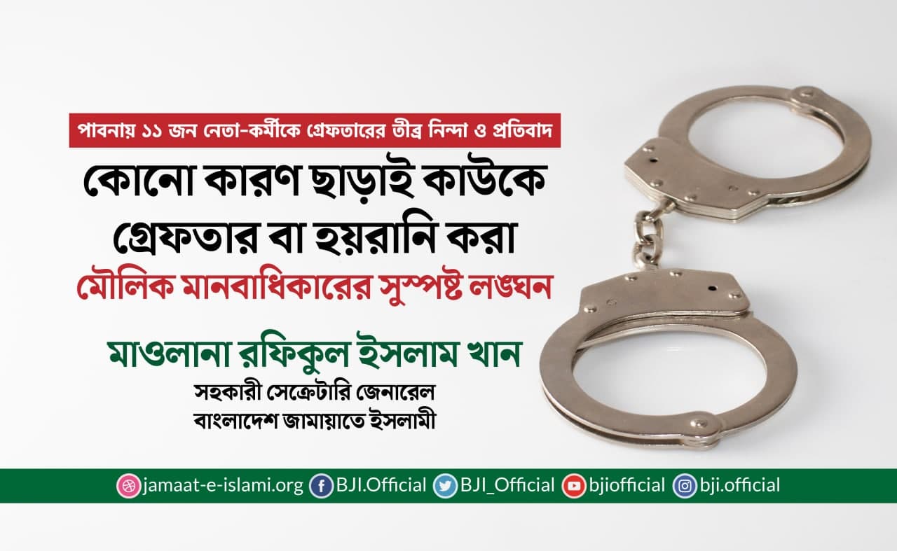 পাবনায় ১১ জন নেতা-কর্মীকে গ্রেফতারের তীব্র নিন্দা ও প্রতিবাদ