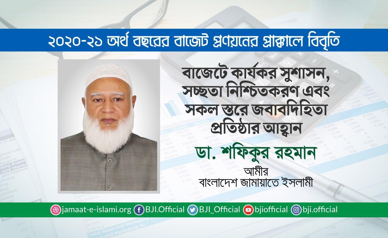 ২০২০-২১ অর্থ বছরের বাজেট প্রণয়নের প্রাক্কালে বিবৃতি