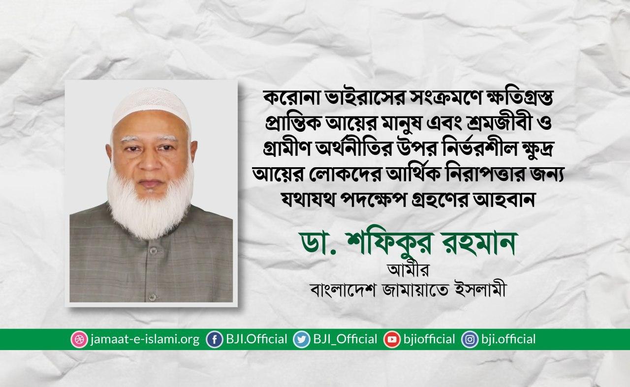 করোনা ভাইরাসের সংক্রমণে ক্ষতিগ্রস্ত প্রান্তিক আয়ের মানুষ এবং শ্রমজীবী ও গ্রামীণ অর্থনীতির উপর নির্ভরশীল ক্ষুদ্র আয়ের লোকদের আর্থিক নিরাপত্তার জন্য যথাযথ পদক্ষেপ গ্রহণের আহবান