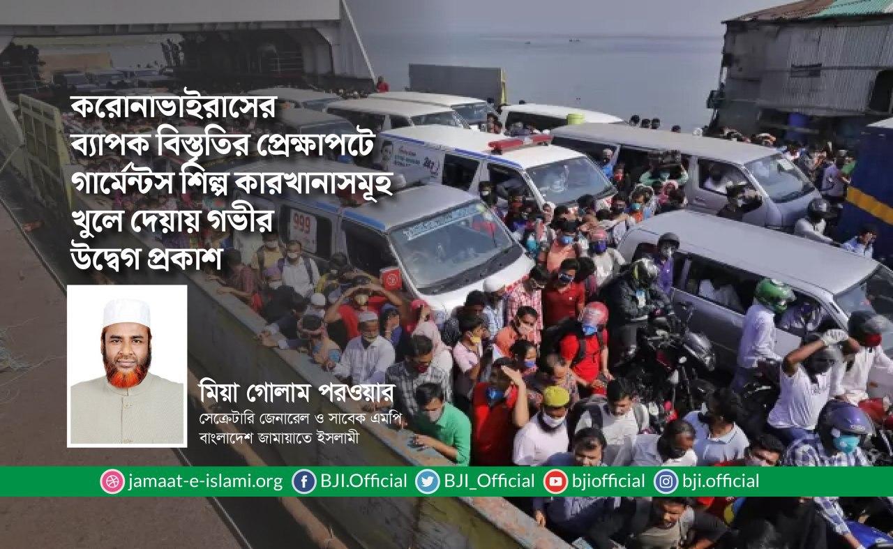 করোনাভাইরাসের ব্যাপক বিস্তৃতির প্রেক্ষাপটে গার্মেন্টস শিল্প কারখানাসমূহ খুলে দেয়ায় গভীর উদ্বেগ প্রকাশ