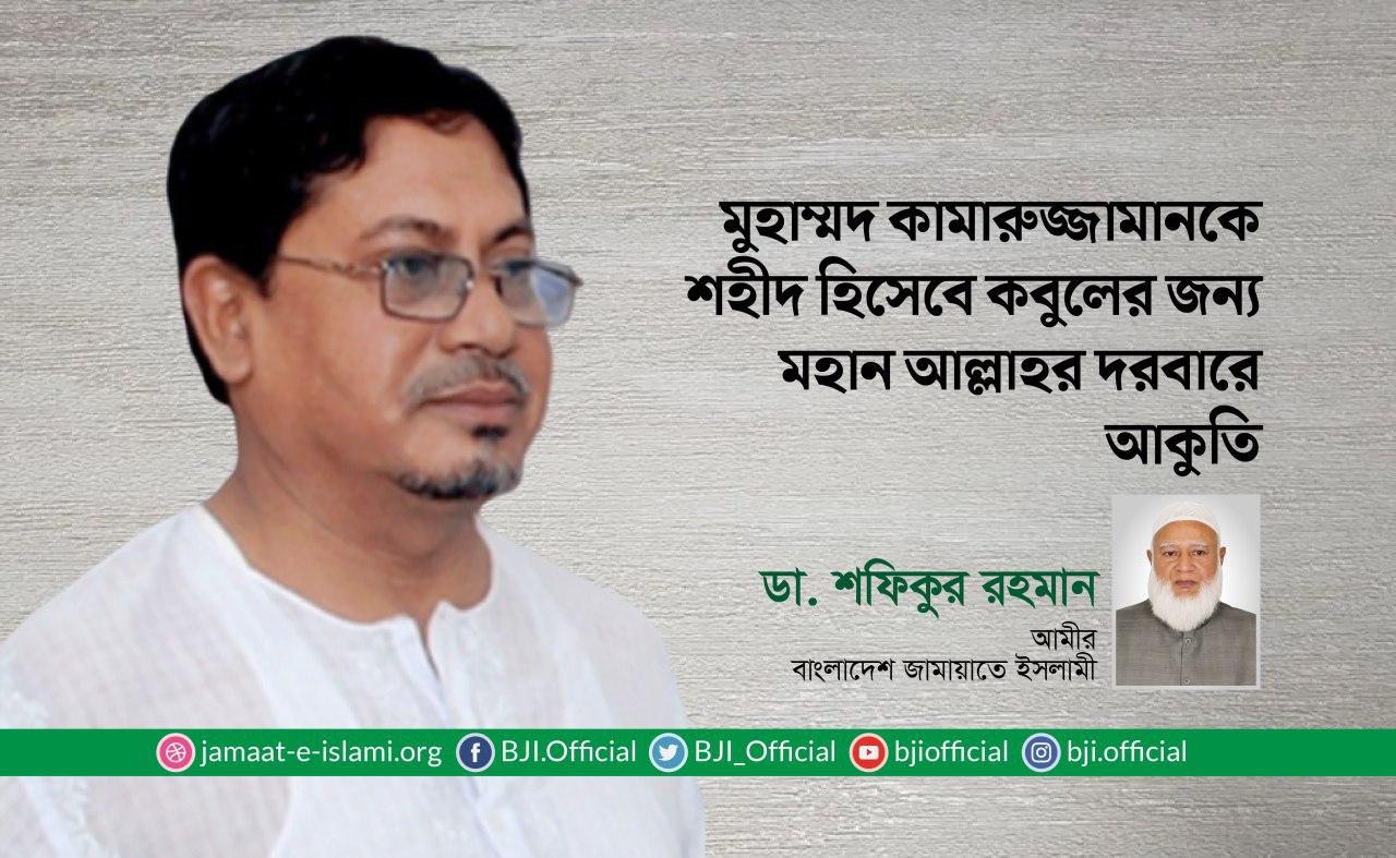 জনাব মুহাম্মদ কামারুজ্জামানকে শহীদ হিসেবে কবুলের জন্য মহান আল্লাহর দরবারে আকুতি