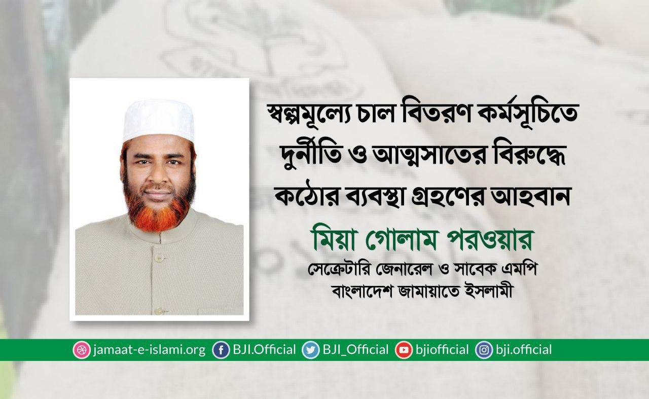 স্বল্পমূল্যে চাল বিতরণ কর্মসূচিতে দুর্নীতি ও আত্মসাতের বিরুদ্ধে কঠোর ব্যবস্থা গ্রহণের আহবান