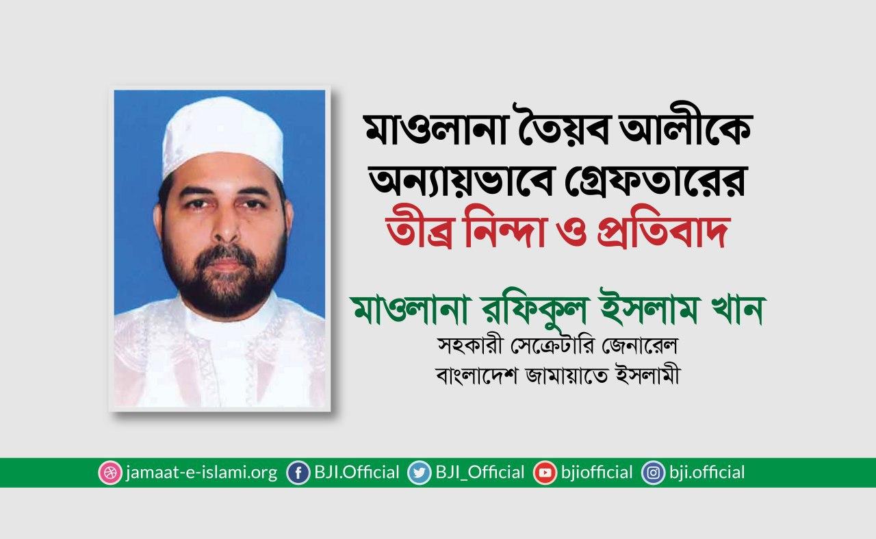 মাওলানা তৈয়ব আলীকে অন্যায়ভাবে গ্রেফতারের তীব্র নিন্দা ও প্রতিবাদ