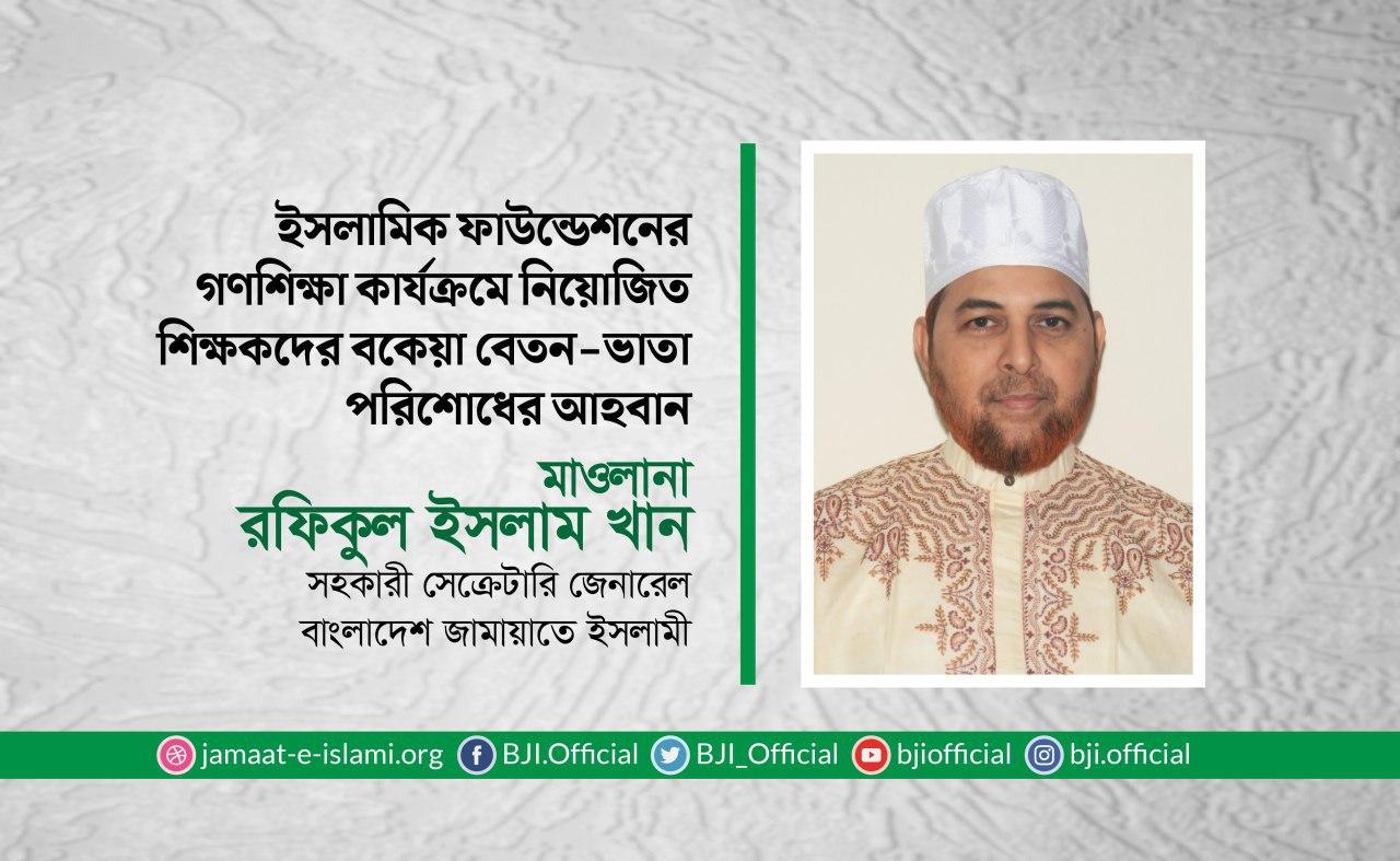 ইসলামিক ফাউন্ডেশনের গণশিক্ষা কার্যক্রমে নিয়োজিত শিক্ষকদের বকেয়া বেতন-ভাতা পরিশোধের আহবান