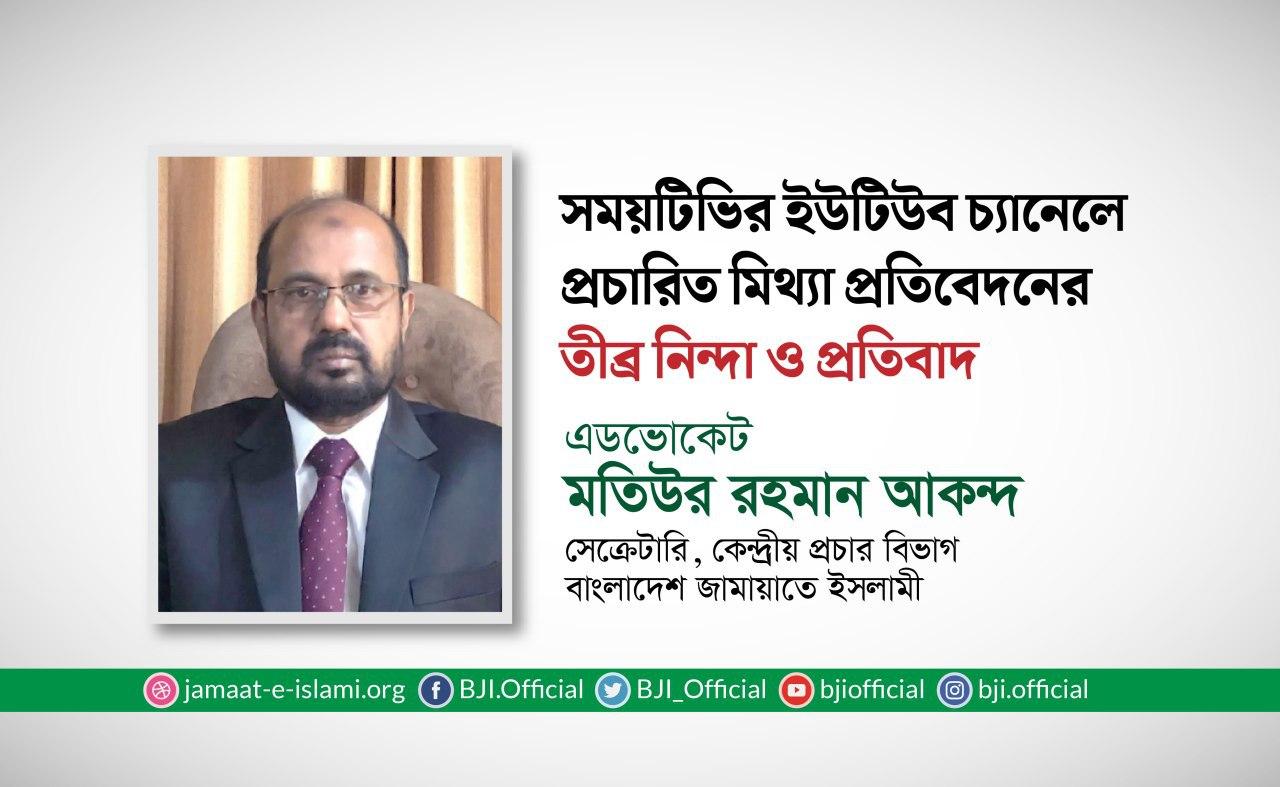 সময়টিভির ইউটিউব চ্যানেলে প্রচারিত মিথ্যা প্রতিবেদনের তীব্র নিন্দা ও প্রতিবাদ