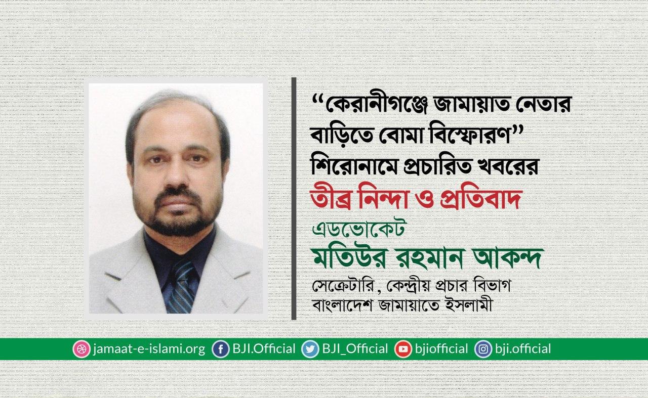“কেরানীগঞ্জে জামায়াত নেতার বাড়িতে বোমা বিস্ফোরণ” শিরোনামে প্রচারিত খবরের তীব্র নিন্দা ও প্রতিবাদ