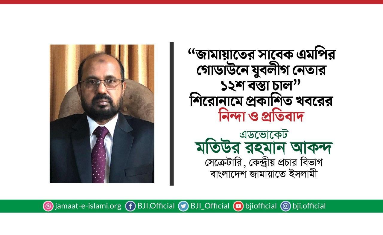 “জামায়াতের সাবেক এমপির গোডাউনে যুবলীগ নেতার ১২শ বস্তা চাল” শিরোনামে প্রকাশিত খবরের নিন্দা ও প্রতিবাদ