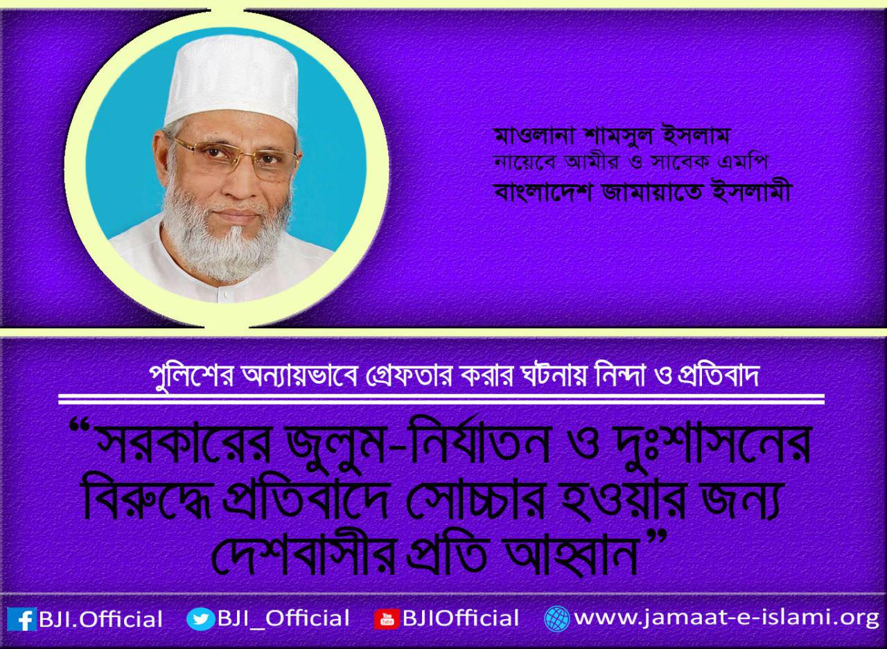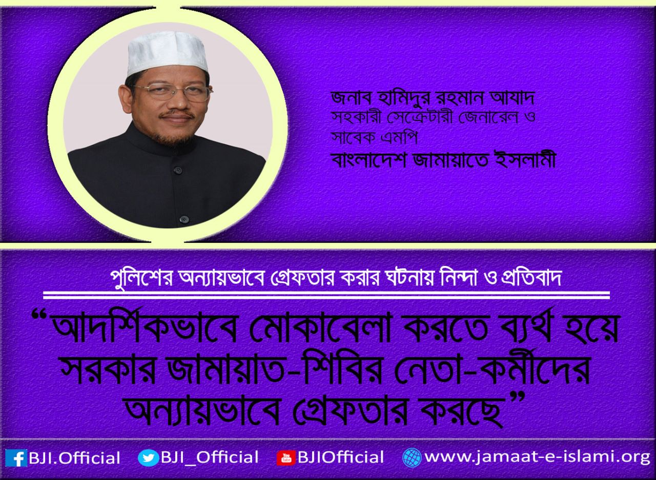 পুলিশের অন্যায়ভাবে গ্রেফতার করার ঘটনার তীব্র নিন্দা ও প্রতিবাদ