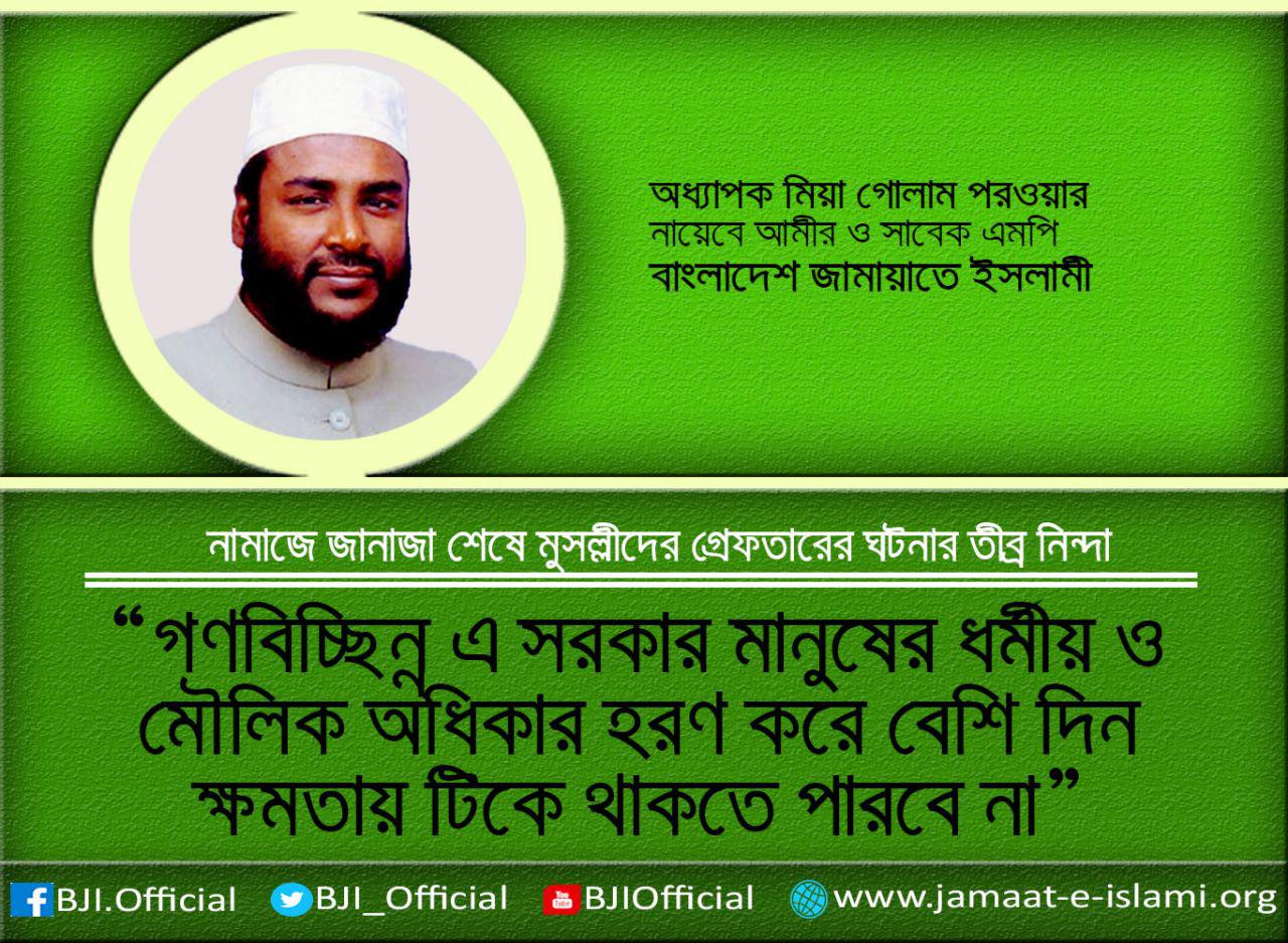 নামাজে জানাযা শেষে মুসল্লীদের গ্রেফতারের ঘটনার তীব্র নিন্দা
