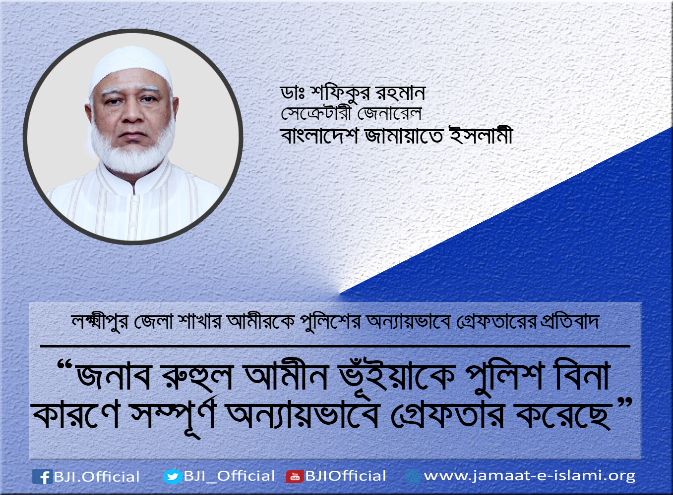লক্ষ্মীপুর জেলা শাখার আমীরকে পুলিশের অন্যায়ভাবে গ্রেফতারের প্রতিবাদ