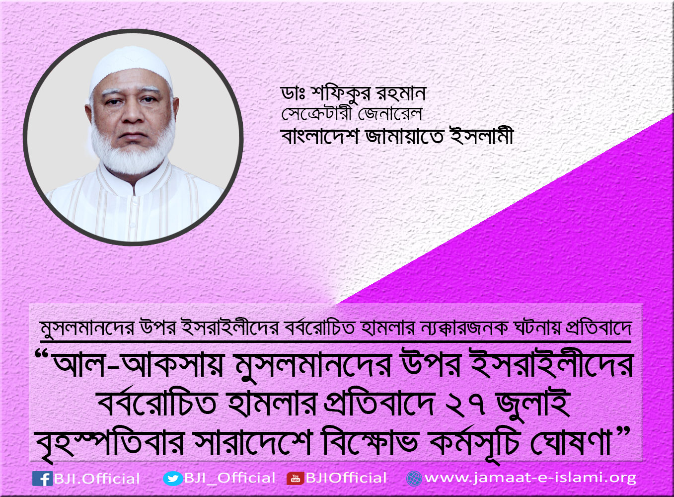 মুসলমানদের উপর ইসরাইলীদের বর্বরোচিত হামলার ন্যক্কারজনক ঘটনার প্রতিবাদ