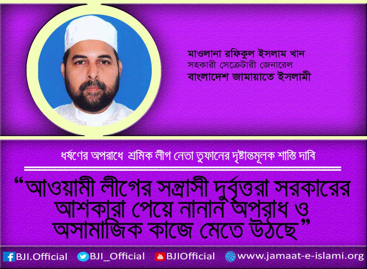 ধর্ষণের অপরাধে শ্রমিক লীগ নেতা তুফানের দৃষ্টান্তমূলক শাস্তি দাবি