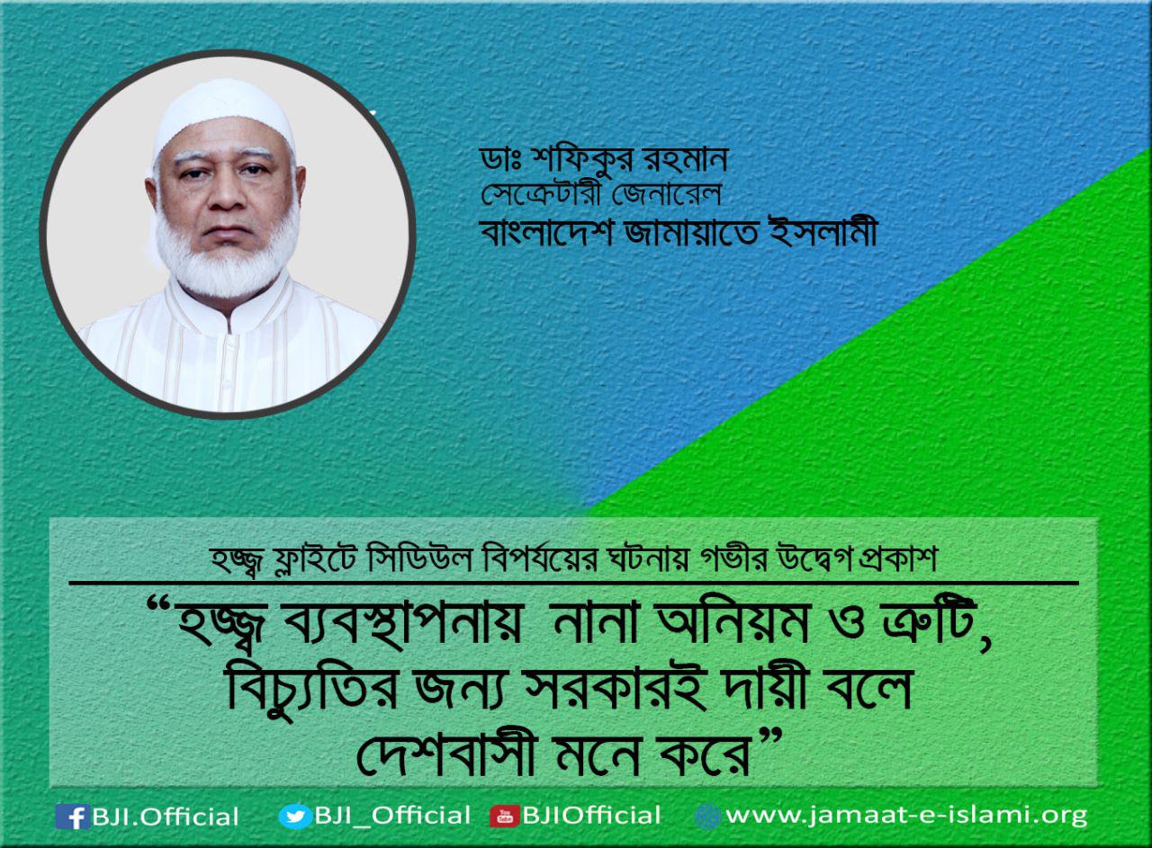 হজ্জ্ব ফ্লাইটে সিডিউল বিপর্যয়ের ঘটনায় গভীর উদ্বেগ প্রকাশ