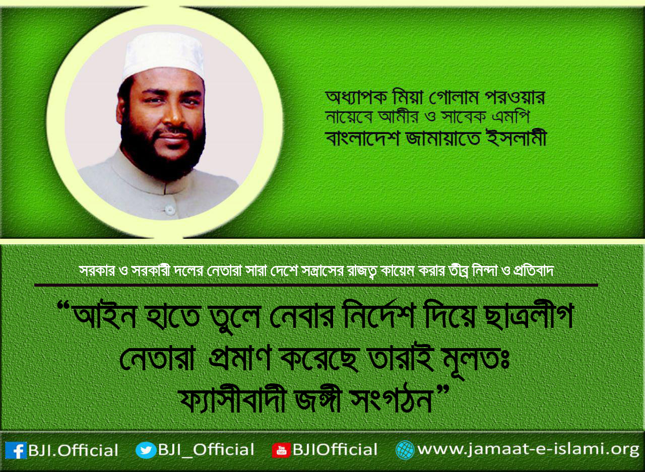 সরকার ও সরকারী দলের নেতারা সারা দেশে সন্ত্রাসের রাজত্ব কায়েম করার তীব্র নিন্দা ও প্রতিবাদ