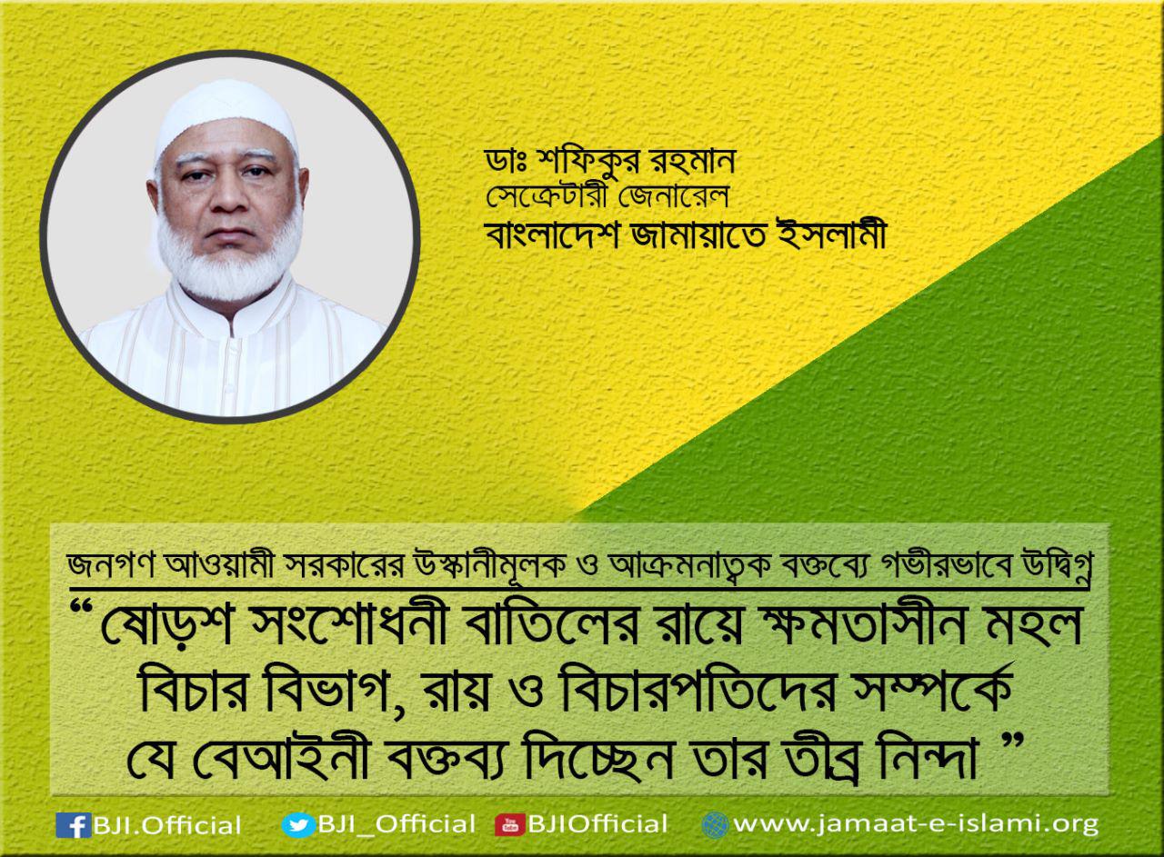 জনগণ আওয়ামী সরকারের উস্কানীমূলক ও আক্রমনাত্বক বক্তব্যে গভীরভাবে উদ্বিগ্ন