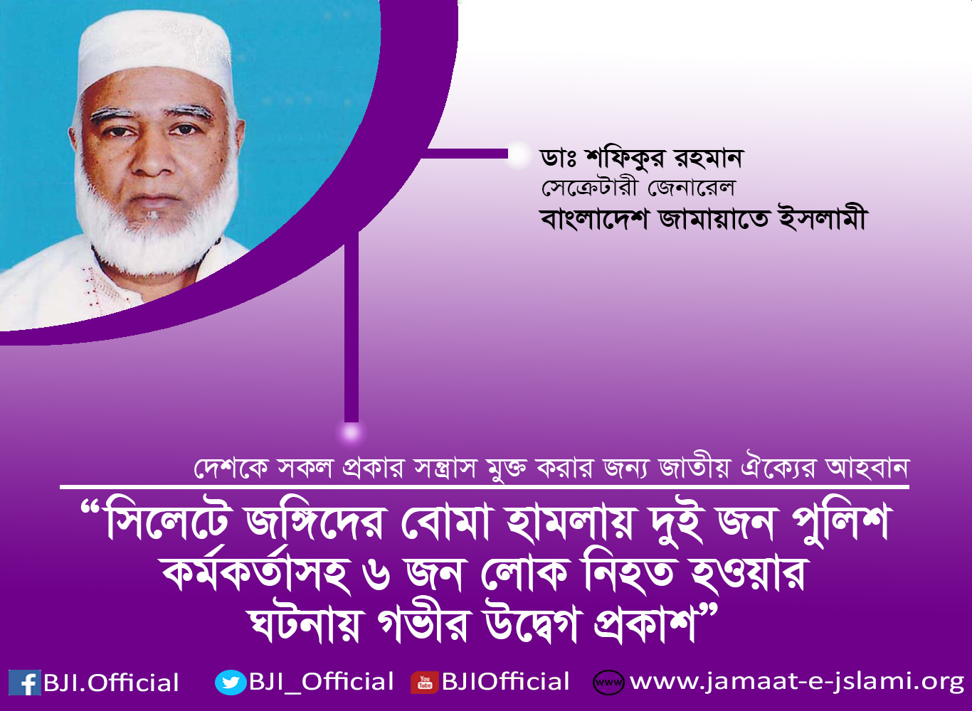 দেশকে সকল প্রকার সন্ত্রাস মুক্ত করার জন্য জাতীয় ঐক্যের আহবান