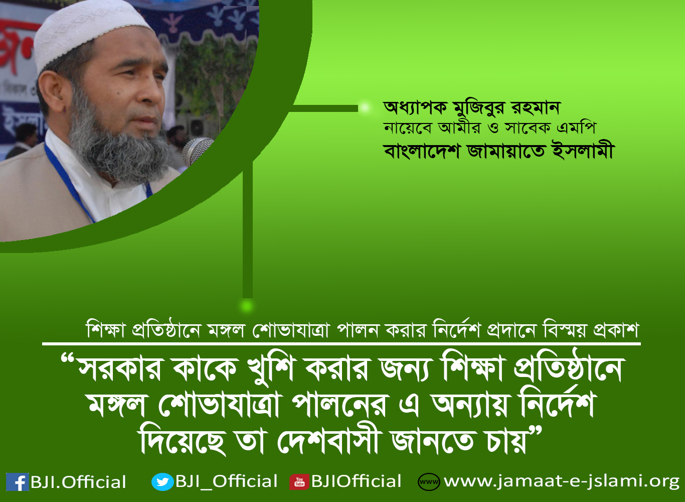 শিক্ষা প্রতিষ্ঠানে মঙ্গল শোভাযাত্রা পালন করার নির্দেশ প্রদানে বিস্ময় প্রকাশ