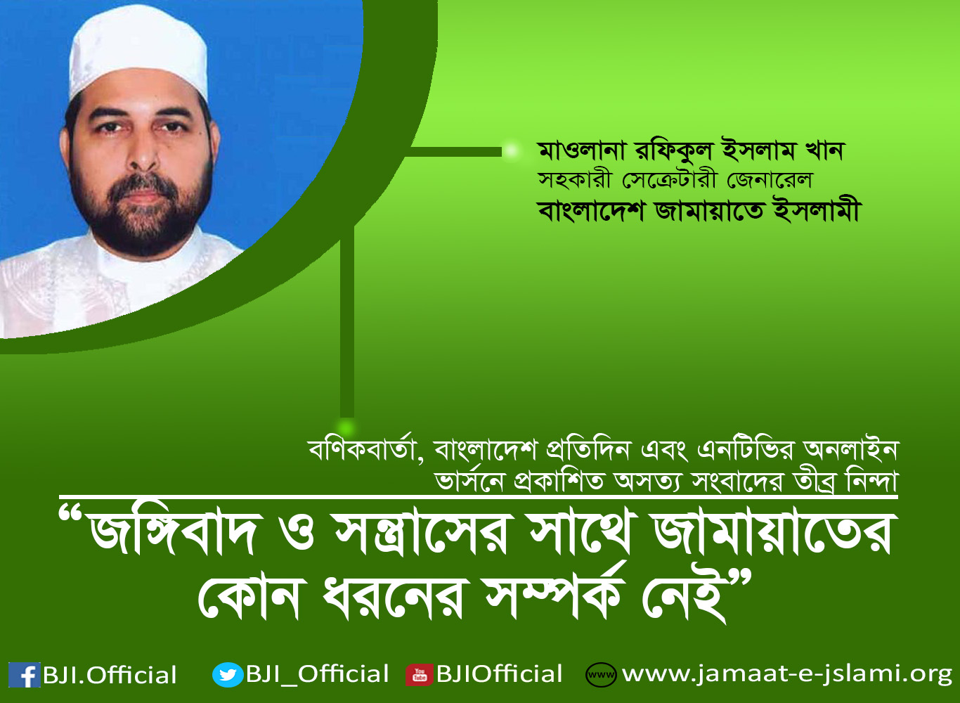 বণিকবার্তা, বাংলাদেশ প্রতিদিন এবং এনটিভির অনলাইন ভার্সনে প্রকাশিত অসত্য সংবাদের তীব্র নিন্দা